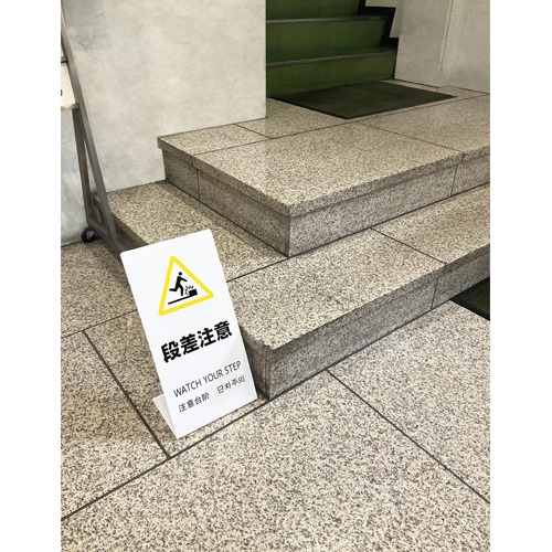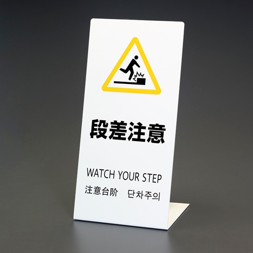 ●表示内容:段差注意 ●サイズ(mm):220×450×150 ●厚み:2mm ●材質:エンビ板 片面マット ●4カ国語に対応。日本語・英語・中国語・韓国語 ●室内、オフィス向けのサインスタンド ●JIS規格に準拠した表示プレートです。 ●視認性高く注意喚起を促します。 ●最小出荷単位: 1