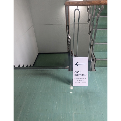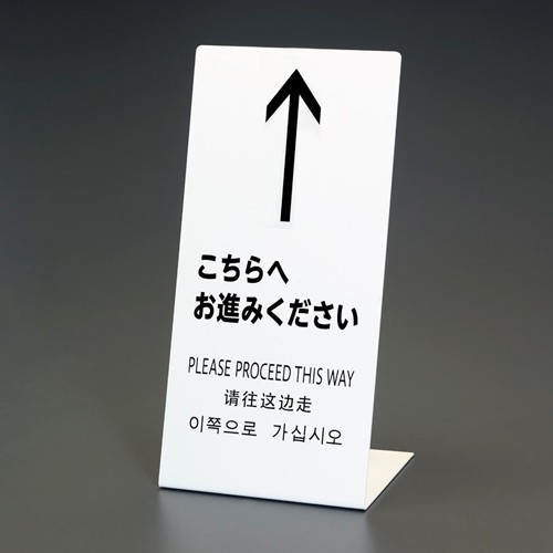 ●表示内容:こちらへお進みください ●サイズ(mm):220×450×150 ●厚み:2mm ●材質:エンビ板 片面マット ●4カ国語に対応。日本語・英語・中国語・韓国語 ●室内、オフィス向けのサインスタンド ●JIS規格に準拠した表示プレートです。 ●視認性高く注意喚起を促します。 ●最小出荷単位: 1