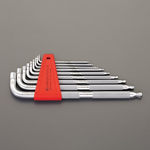●メーカー…PBSWISSTOOLS●型番…PB 3212.LH-10 CBB●セット点数…9本●サイズ…1.5・2・2.5・3・4・5・6・8・10mm●軸長…89~221mm●総重量…573g●ボールポイント付●長軸側にローレット付で扱いやすい●ローレットが入り滑りにくくなっているので、油の付いた手や濡れた手でも安全に作業可能●参考在庫数・商品詳細・サイズ情報はメーカー(参考)URLからもご確認いただけます。 ●最小出荷単位: 1