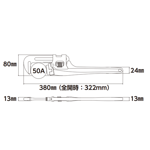 ●メーカー…MCC(松阪鉄工所) ●型番…PWTDA350 ●呼び全長(mm)…350 ●パイプ外径(mm)…~61(50A) ●重量(kg)…0.68 ●歯幅…13mm ●材質…アルミ合金鍛造ボディ ●適合管種…亜鉛メッキ鋼管(白管) ●歯幅は僅か13mm。既存モデルよりも30%以上スリムになりました。溝中、壁際、天井等の狭所はもちろん、短ニップルやエルボ継手などの掴み代の狭い継手の締付、エルボ返し等あらゆる現場で大活躍。 ●アルミモデルのさらなる軽量化に成功し、パイプレンチシリーズ最軽量となりました。軽いアルミ鍛造ハンドルは十分な強度を保持したまま、作業性の向上が期待できます。 ●パイプレンチアルミシリーズではくわえられなかった継手にもワイドな口開きで対応。能力UPは作業効率に直結します。 ●長年パイプレンチを製造してきた技術をそのまま継承。喰い付き抜群の山形状に職人が一丁ずつ焼入れ(高周波焼入れ)を施すことで、機能性、耐久性を最高水準で実現しています。 ●参考在庫数・商品詳細・サイズ情報はメーカー(参考)URLからもご確認いただけます。 ●最小出荷単位: 1