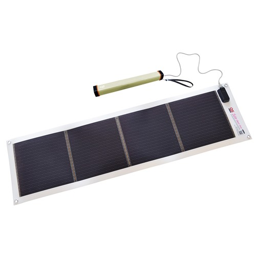 ●出力電流…最大2.4A/DC5V ●サイズ(mm)…ソーラーシート:915(L)×250(W)×1(t)(突起部除く) 防水LEDチャージャー:37(W)×37(D)×292(L) ●最大出力…電力:9.5W 電圧:5.0V ※日照条件によって発電能力は変化するため、上記数値を保証するものではありません。 ●重量…ソーラーシート:0.24kg 防水LEDチャージャー:0.37kg ●材質…ソーラーシート:アモルファスシリコン 防水LEDチャージャー:樹脂 ●最大発電能力…10.8W(USBボックス内の回路を介さないソーラーシート単体の値です。) ●使用時製品温度…ソーラーシート:0~60度 ●使用湿度…ソーラーシート:85%RH以下(結露しないこと) ●使用温度…防水LEDチャージャー:0~40度 ●保管温度…ソーラーシート:-20~+60度 ●防水性能…ソーラーシート:IP65(USBボックス部を除く) 防水LEDチャージャー:IP65(防水キャップを閉めた状態) ●色…防水LEDチャージャー:グリーン ●電池…リチウムイオンバッテリー ●電池容量…6000mAh/DC3.7V ●充電時間…約4時間 ●使用可能時間…白色LED(Low):約100時間 白色LED(Medium):約12時間 白色LED(High):約 6時間 青色/赤色LED(点滅):約90時間 虫除けLED:約6時間 サーチライトLED:約9時間 ●備考…PSE適合品 ●付属品…収納袋(紐付き)×1、ストラップ×1、USBコード×1(データの送受信はできません) ●太陽光で発電しスマートフォンなどへ直接充電可能な、軽い手巻き型のモバイルソーラーシートと、防水LEDチャージャー(バッテリー)のセット。 ●電源の無いところで、太陽光からのスマートフォン・iPad・タブレットなどの直接充電ができるソーラーシート。 ●曲げや衝撃に強く、丸めて収納保管が出来る、安全なアモルファスソーラーシート。 ※必ずUSBボックスを外にして巻いてください。破損する可能性があります。 ●温度の影響を受けにくく、砂漠のような過酷な環境でも発電可能なソーラーシート。 ●ハトメ加工済み。屋根やリュックサック・木の枝などに取付けて太陽光が差す方向に自由に向けられます。 ●日本製の品質と信頼性。 ●緊急災害時や、海・山の非常用電源、エコライフ実践の携帯電源。 ●LEDライトは照明ライト(3段階調整可能)、赤色/青色点滅、虫除けLED、サーチライト(白色LED)の機能を装備。 ※虫除けLEDは全ての虫に対して虫除け効果を発揮するわけではありません。主に蚊に対しての効果を期待できます。 ●LEDの最長点灯約100時間。※明るさLowの場合 ●USB出力最大2.4Aで外部機器への給電が可能。※本機への充電は充電用ポートより最大2.1Aになります。 ●参考在庫数・商品詳細・サイズ情報はメーカー(参考)URLからもご確認いただけます。 ●最小出荷単位: 1