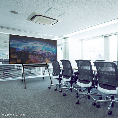 テレビ会議システム内蔵ディスプレイなど重量のあるディスプレイ設置に最適、丸いフレームで柔らかいデザイン