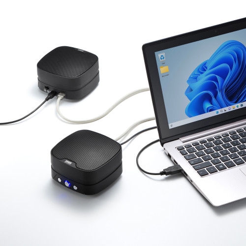 WEB会議に最適な高感度マイク搭載、最大2台まで連結が可能