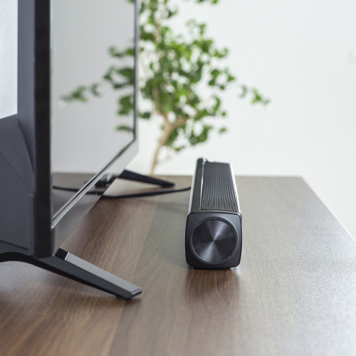 ●メーカー…サンワサプライ ●型番…MM-SPSBA3 ●実用最大出力…6W(3W+3W) ●周波数特性…100Hz~20000Hz ●スピーカー形式…密閉型フルレンジスピーカー ●スピーカーサイズ…2インチ(直径約52mm)×2 ●ロードインピーダンス…4Ω ●入力端子…3.5mmステレオミニプラグ×1 ●外部出力…ヘッドホンジャック、マイクジャック ●マイク入力…3.5mmステレオミニプラグ×1 ●電源…USBポートより供給(DC5V 1A) ●サイズ…W450×D50×H50mm ●重量…約470g ●ケーブル長…3.5mmステレオミニプラグケーブル/約1.2m USB給電ケーブル/約1.2m ●セット内容…本体、取扱説明書・保証書 ●電源ボタンと音量ボタンが独立しているので、音量の再調整を行う必要がありません。 ●高さわずか5cmの超スリムデザインでディスプレイ下へ省スペースに設置できます。 ●USB給電で動作するためAC電源を確保する必要がなく、テレビのUSBポートなどからも給電し動作させることができます。 ●3.5mmステレオミニプラグの音声入力に対応しており、パソコンやテレビ、スマートフォンなどの音声出力が可能です。映画やニュースなどのセリフやメイン音声がよりはっきりと明瞭に聴こえるようになります。 ●直観的に操作できる大型のボリュームコントロールを搭載しています。好みの音量に素早く設定できます。 ●ヘッドホンジャック・マイクジャックを搭載しており、夜間の映画鑑賞やゲームなどを楽しんだり、ビデオ会議などでヘッドセットを簡単に接続することができます。 ●参考在庫数・商品詳細・サイズ情報はメーカー(参考)URLからもご確認いただけます。 ●最小出荷単位: 1
