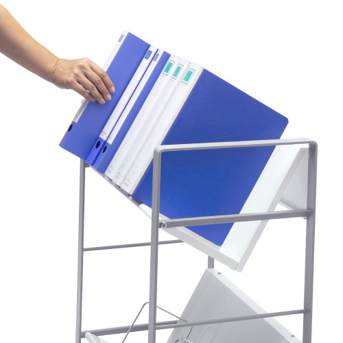 斜め設計の棚板で、ファイル類が取出しやすい2段タイプ