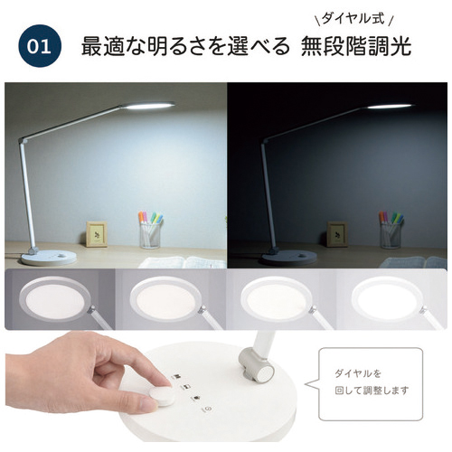 ダイヤル式無段階調光でお好みの明るさを選べる。45分の自動OFFタイマー機能付き。