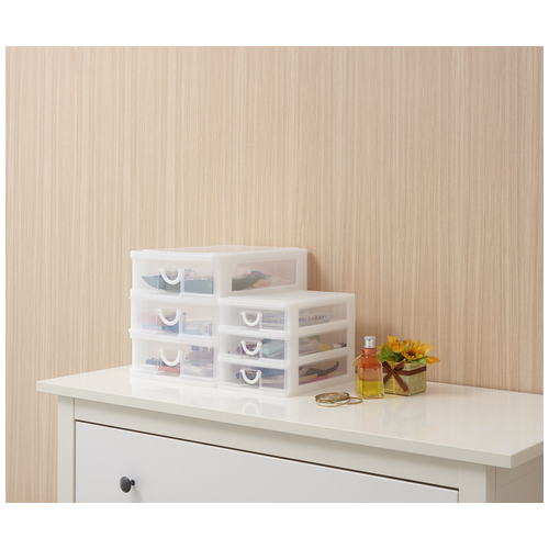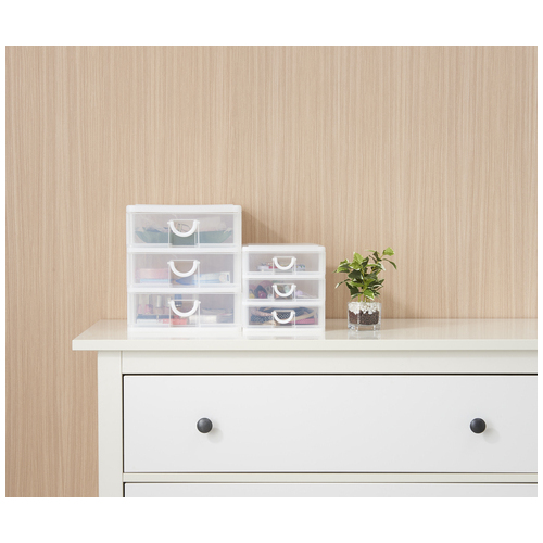 ●外形寸法(幅)[mm]:252●外形寸法(奥)[mm]:350●外形寸法(高)[mm]:280●質量[kg]:1441●引出内形寸法(幅)[mm]:210●引出内形寸法(奥)[mm]:310●引出内形寸法(高)[mm]:72●引出内形寸法:210×310×72●本体色:ホワイト●引出段数:深型3段●材質:本体・引出し=ポリプロピレン●製造国:日本 ●最小出荷単位: 1
