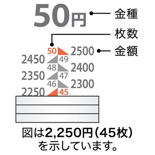 ●外形寸法(幅)[mm]:175●外形寸法(奥)[mm]:154●外形寸法(高)[mm]:62●質量[g]:168●付属品:コインケース(6金種各1個・1個あたり50枚保管可能)●材質:再生ABS●製造国:日本●足ゴム4箇所付●各金種50枚収納 ●最小出荷単位: 1