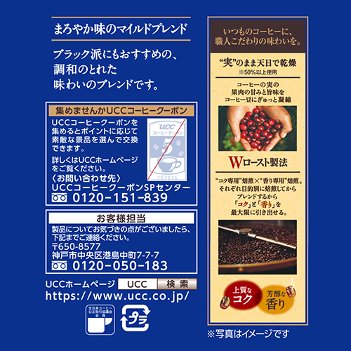 ●種別:まろやか味のマイルドブレンド●タイプ:粉タイプ●内容量:280g●何杯分:約28杯分●原産国:日本●ブランド:UCC職人の珈琲●規格:レギュラーコーヒー●軽減税率:対象●メーカーの都合によりパッケージや仕様などが変更になる場合がございますので、あらかじめご了承ください。 ●最小出荷単位: 1