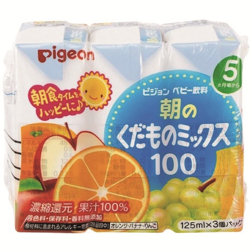 ●種別:くだものミックス●内容量:125mL●入数:3本●容器形状:紙パック●5カ月~※発育には個人差がございますので、表示の適正年齢は参考としてください。●※5,6ヵ月の赤ちゃんには湯さましで2倍程度にうすめてください。●カロリー:100mlあたり48kcal●軽減税率:対象●製造国:日本●メーカーの都合によりパッケージや仕様などが変更になる場合がございますので、あらかじめご了承ください。 ●最小出荷単位: 1