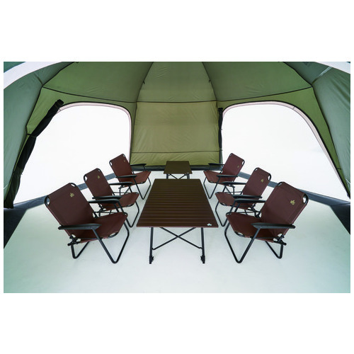 ●外形寸法(幅)[mm]:約5200●外形寸法(奥)[mm]:6000●外形寸法(高)[mm]:2400●収納寸法:約幅700×奥260×高260mm●付属品:ペグ、ロープ、収納バック、フレーム用収納袋、小物袋、ハンマー●材質:フレーム=グラスファイバー・スチール、フライシート=難燃性ポリタフタ、メッシュ=ポリエステル●耐水圧:フライシート1600mm●総重量:約14.7kg ●最小出荷単位: 1