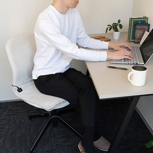お尻や足をポカポカやさしく温めるUSBタイプのホットマット。かばんに入れて持ち運べる!約45℃、40℃、35℃の3段階温度調節可能。