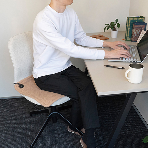 お尻や足をポカポカやさしく温めるUSBタイプのホットマット。かばんに入れて持ち運べる!約45℃、40℃、35℃の3段階温度調節可能。
