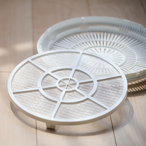 モーターを本体背面ではなく2枚の羽根の間に設置。背面から大量の風を取り込み、「Wファン構造」でパワフルな風を生み出します。3D首振りで部屋中の空気をかくはん。羽根にほこりが付きにくい背面フィルター付き。