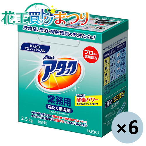 ●入数:6箱●まとめ買い●内容量:2.5kg●成分:界面活性剤(25%、直鎖アルキルベンゼンスルホン酸ナトリウム、アルキル硫酸エステルナトリウム、ポリオキシエチレンアルキルエーテル)、水軟化剤(アルミノけい酸塩)、アルカリ剤(炭酸塩)、分散剤、工程剤、漂白剤、蛍光増白剤、酵素●液性:弱アルカリ性●香り:微香性●付属品:計量スプーン入り●粉末タイプ●製造国:日本 ●最小出荷単位: 1