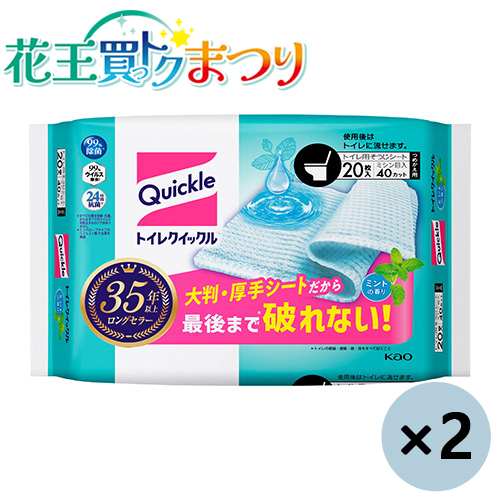●入数:20枚入(10枚×2個)×2パック●まとめ買い●品名:トイレ用掃除シート●種別:つめかえ用●用途:便器、便座、タンク、床、壁など、トイレ内のふきそうじ。●入数:20枚(10枚×2個)●材質:パルプ●成分:界面活性剤(アルキルグリコシド)、グリコールエーテル、安定化剤、除菌剤●液性:弱酸性●香り:ミントの香り●シートサイズ(横×縦):約300×245mm●シート1枚を半分に切って使えるミシン目入りです。●乾燥を防ぎ、品質を保持するため、必ず『881-721 トイレクイックル 本体 10枚』の本体容器につめかえてお使いください。●温水洗浄便座/暖房便座にも使えます。●『トイレクイックル』シリーズは、トイレットペーパーの日本工業規格(JIS P4501)の「ほぐれやすさ」試験による品質基準を満たしており、ご使用後トイレに流せる商品ですので、安心してお使いいただけます。 ●最小出荷単位: 1