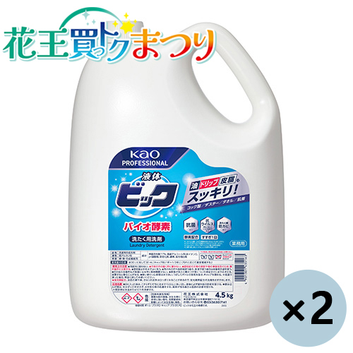 ●入数:2本●まとめ買い●内容量:4.5L●成分:界面活性剤(19%、高級アルコール系(非イオン))、pH調整剤、安定化剤、酵素、蛍光増白剤●液性:弱アルカリ性●用途:綿・麻・合成繊維用/入数:1本●製造国:日本 ●最小出荷単位: 1