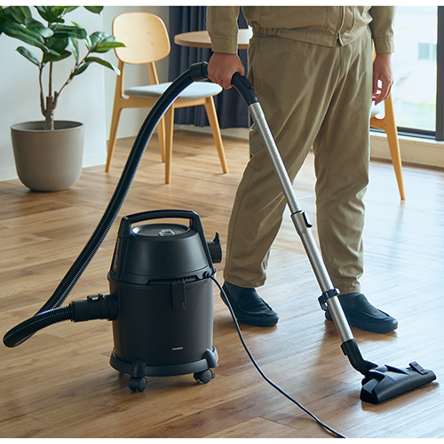 大容量の集塵容量と高い吸引力のパワー大容量ウエット&ドライクリーナー。湿ゴミ対応、水を使用した掃除も!ゴミを払うこともできる、ブロワー機能付き。遠くまで差し替えずに使える、コード長15m。