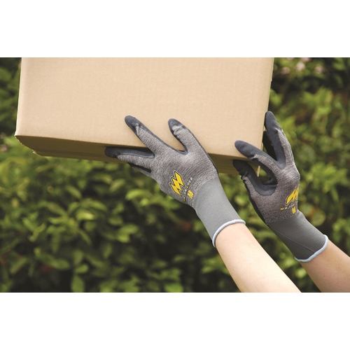 ●メーカー…東和コーポレーション(TOWA) ●型番…314L ●商品名…メジャーローブフィット ●サイズ…L ●全長(mm)…250 ●掌周り(mm)…180 ●中指長さ(mm)…73 ●入数…3双 ●材質…樹脂部分:天然ゴム 繊維部分:ポリエステル ●厚み(mm)…1.4 ●カラー…グレー ●用途…ガーデニング、荷運び、引越し、運搬作業、倉庫内作業、農業、園芸、酪農、収穫、農機具の扱い、土木建築作業、組立作業、建設機械操作など ●手のひら、指に環境にやさしい天然ゴムをコーティングした、柔らかで丈夫な手袋です。 ●特殊すべり止め「マイクロフィニッシュ」加工をしており、細かな凸凹のすべり止めにより、優れたグリップ力を発揮します。 ●手によくフィットし、細かな作業に適しています。 ●甲部は通気性がよく、長時間作業でもムレにくく快適です。 ●参考在庫数・商品詳細・サイズ情報はメーカー(参考)URLからもご確認いただけます。 ●最小出荷単位: 1