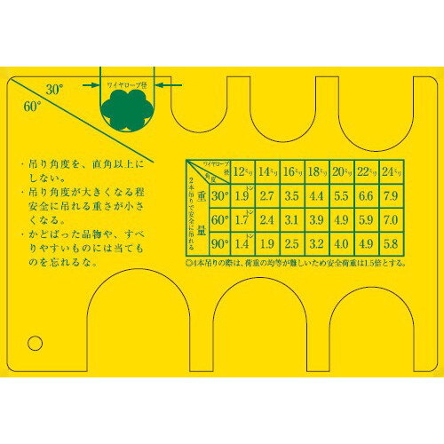 ●メーカー…ユニット(UNIT) ●型番…327-201 ●測定範囲…12mm・14mm・16mm・18mm・20mm・22mm ●材質…PVC ●表示内容…1.断線はないか 2.摩耗していないか 3.キンクしていないか 4.形くずれ、腐食はないか ●サイズ…63×92×2mm ●重量…10g ●ワイヤロープの摩耗具合を計るゲージです。 ●不適格なワイヤロープを簡単に見分けることができます。 ●参考在庫数・商品詳細・サイズ情報はメーカー(参考)URLからもご確認いただけます。 ●最小出荷単位: 1
