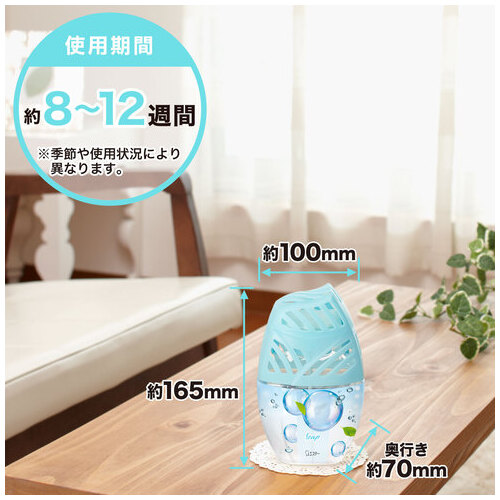 しっかり消臭、香り広がる。キャップを引き上げて香りや強さが調節できる。ナノパウダー配合ですばやく強力に消臭。