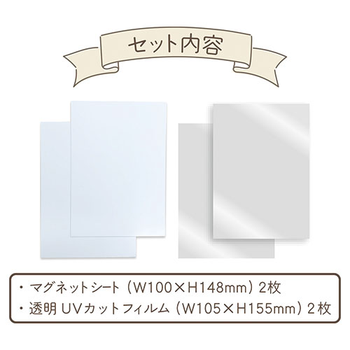 ●入数:4枚●サイズ:100mm×0.5mm×148mm●製造国:日本●注意事項:一度貼ったフィルムは剥がすことができません●2セット入り●マグネット×2枚、フィルム(透明UVカットフィルム)×2枚 ●最小出荷単位: 1