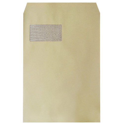 ●入数:100枚●外形寸法(縦)[mm]:324●外形寸法(横)[mm]:229●坪量:85g/㎡●貼り合せ:センター●テープ:有●定型/定形外:定形外●郵便番号枠:無●水のり:無●色:クラフト●材質:窓部分=グラシン紙 ●最小出荷単位: 1
