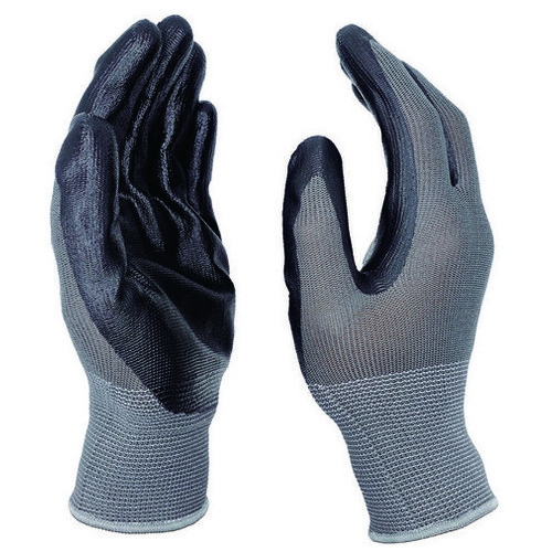 ●入数:10双●全長:約230mm●中指長さ[mm]:約77●掌幅[mm]:約96●手のひら周り:約192●サイズ:M●色:ブラック●滑り止め:あり●抗菌防臭:無し●規格:ブラック M●仕様:【手袋部】ポリエステル【加工部】ニトリルゴム●種別:手袋●材質:手袋部:ポリエステル/加工部:ニトリルゴム●製造国:中国●注意事項:薬品(酸・アルカリ)、油類(灯油・機械油等)、溶剤(ガソリン・ベンジン等)によっては浸透しますので、この様な用途には使用しないでください。耐電圧性または電気に対し、絶縁性はありませんのでご注意ください。●突き刺し、耐摩耗に優れたニトリル背抜き手袋。驚異のフィット感とグリップ力で作業効率アップ!お得な10双パック。 ●最小出荷単位: 1