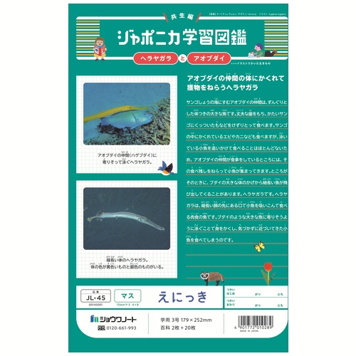 ●外形寸法(縦)[mm]:252●外形寸法(横)[mm]:179●ページ数[枚]:40●枚数[枚]:20●方眼:無●方眼点線:無●マス数[マス]:6×8●マス寸法(縦)[mm]:15●マス寸法(横)[mm]:15●罫内容:15mmマス●白色度:86%●製本形式:糸綴じ●坪量:104●色:緑●教科:えにっき●対象学年:1~3年●ベルマーク:ベルマーク参加商品●枚数(1冊あたり)[枚]:20●規格:セミB5●種別:えにっき●材質:紙製●製造国:日本●学習百科付き2枚6ページ●ベルマーク参加商品●日本PTA全国協議会推薦 ●最小出荷単位: 1