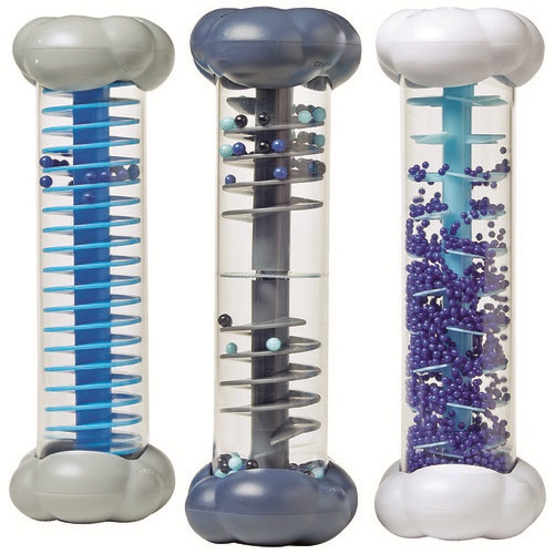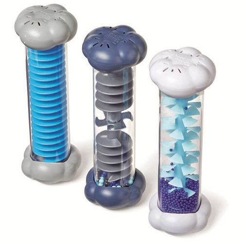 雲の形をしたかわいいボトルを振ったり傾けたりして様々な雨の音を聞いてみよう!