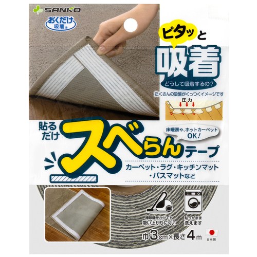 マットの裏に貼るだけでズレない!好きな長さにカットしてお使いください。貼ったまま洗濯できます。