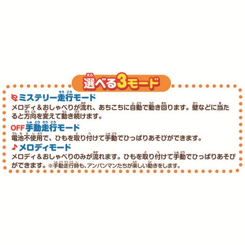 ●寸法:幅145×奥290×高145mm●質量:380g●電池:単3形アルカリ乾電池×3本(別売)●対象年齢:8ヶ月●材質:ABS、POM、TPR、ポリエステル、ナイロン、PET ●最小出荷単位: 1