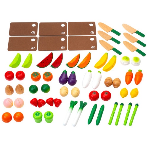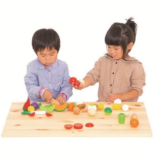 ●セット内容:包丁6、まな板6、アスパラガス4、いちご4、オレンジ2、メロン2、バナナ2、タマネギ2、タケノコ2、もも2、ピーマン2、レンコン2、ネギ2、じゃがいも2、かぼちゃ2、スイカ2、にんじん2、レモン2、だいこん2、なす2、ブロッコリー2、リンゴ2、トマト2、きゅうり2、かき2、収納ケース●寸法:収納ケース=450×290×160mm、リンゴ=48×50×50mm●質量:3500g●ケース寸法:収納ケース=450×290×160mm●対象年齢:3歳以上●パーツ数:62ピース+ケース●材質:天然木、MDF、マグネット、合板、ポリプロピレン●注意事項:カタログ写真は、仕上げ、色合い等、実際の商品と異なる場合があります。商品の仕様は、予告なく変更することがあります。 ●最小出荷単位: 1