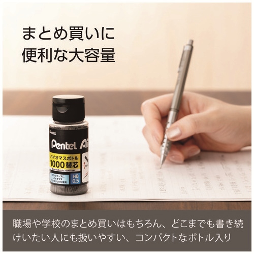 ●芯径:0.5●硬度:HB●芯本数:1000●芯長さ[mm]:60●材質:ボトル=PET キャップ=PP●製造国:日本 ●最小出荷単位: 1