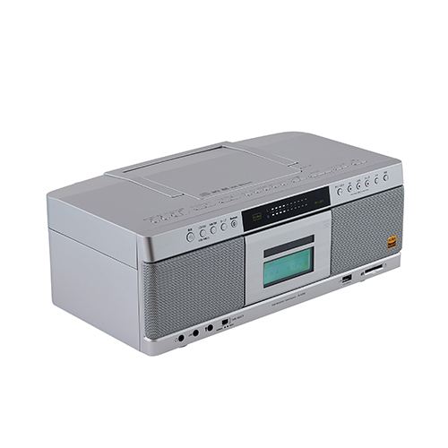 ●外寸(幅×奥×高):350x218x131mm(突起物含まず)●質量:3kg(電池含まず)●スピーカー:Φ6.4cmコーン型+Φ2cmドーム型×2●実用最大出力:20W + 20W●入出力端子:外部入力=Φ3.5mmステレオミニジャック、マイク入力=Φ3.5mmモノラルミニジャック、ヘッドホン出力=Φ3.5mmステレオミニジャック、SDカード挿入口=SD規格に準拠した入力端子、USBメモリー挿入口=USB1.1、USB2.0/DC5V 0.5A●電源:AC100V 50/60Hz●消費電力:22W●コード長:1.5m●付属品:電源コード、リモコン(リチウム電池付属)、AMループアンテナ、取扱説明書(保証書付き)、受信周波数一覧表、ヘッドクリーニングキット●保証期間:1年間●出荷/包装単位:1/2●リピート機能:あり●カラー:シルバー ●最小出荷単位: 1