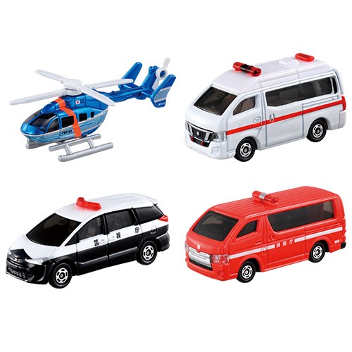 初の警察ヘリコプターを含む緊急車両セット。