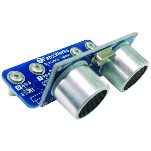 micro:bitに接続して使用することができる拡張パーツです。Webソフト「MakeCode」に専用ブロックを追加することで簡単に使用できます。超音波により物体との距離が計測できる外付センサです。