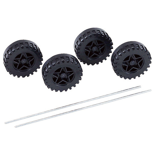 ●セット内容:車輪×4個、車軸×2本●色:黒●材質:タイヤ=プラスチック、車軸=鉄●寸法:車輪=Φ50×幅15mm、車軸=Φ2.3×長さ180mm●車台C型に適合します。●製造国:日本 ●最小出荷単位: 1