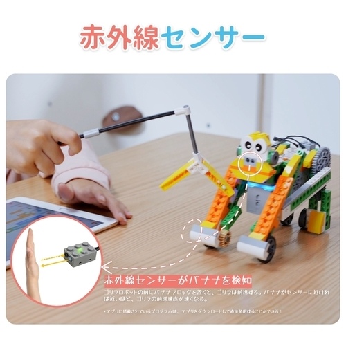 独創的なデザインと多様な遊び方で子どもの興味を引出し、プログラミング思考を育みます。Scratch3.0言語を採用しており、赤外線センサーやカラーセンサーが搭載されています。