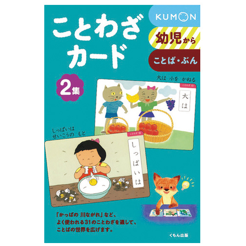 よく使われる31のことわざを通して、ことばの世界を広げます。リズミカルで語調が良く覚えやすいことわざは、ことばの数をどんどん増やし、日常語以外の難しいことばにも自然にふれることができます。カード表面には「ことわざをイメージするイラスト」と「ことわざの出だし」を掲載。裏面にはことわざ全文とことわざの簡単な意味や使い方を掲載しています。