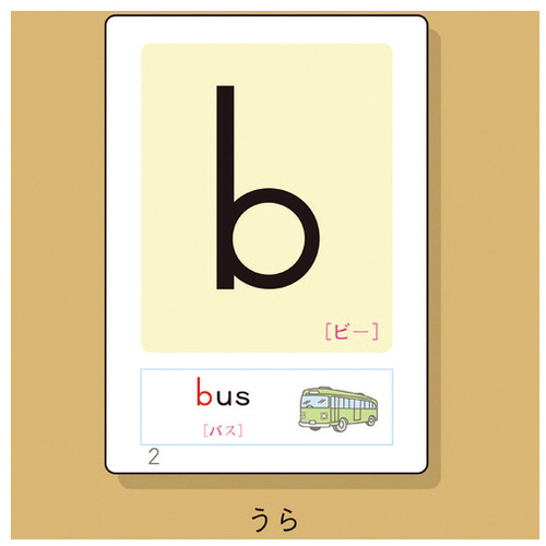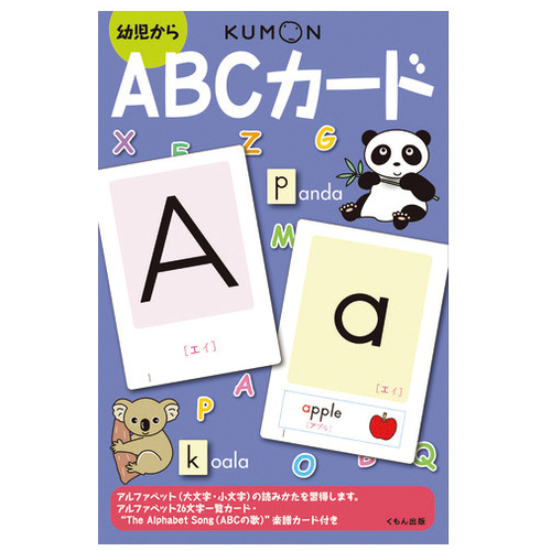 身近なものを表した英単語とイラストで、ことばのなかでアルファベットを学習できます。片面に大文字を、もう片面に小文字を載せた、アルファベット1文字ずつのカードです。 やさしい英単語で、お子さまの興味や関心を広げます。アルファベット26文字一覧カード< The Alphabet Song(ABCの歌)>楽譜カード付きです。
