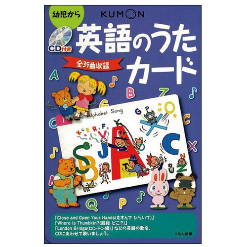 ●セット内容:カード39枚、使い方カード1枚、CD1枚●収録内容:収録曲(39曲)=The Alphabet Song/Seven Steps/1.2.3.4.5.Clap!Clap!/Good Morning/HelloHello/How Are YouMy Friend?/Mother Finger/Head Shoulders Knees and Clap!/Where is Thumbkin?/Blue-Bird/Are You Sleeping?/Lazy Mary/Cuckoo/Close and Open Your Hands/Ten Little Pumpkins/Red Is An Apple/Colors/SundayMondayTuesday/RowRowRow Your Boat/Teddy Bear/'Round the Village/A-TisketA-Tasket/Bingo/HickoryDickoryDock/Ring-a-Ring o'Roses/Old MacDonald/Mary Had A Little Lamb/London Bridge/The Muffin Man/TwinkleTwinkleLittle Star/The Hokey-Pokey/Tick-Tock/The Weater Song/BigLittle/I DoI Do/This Pig Went to Market/Six Little Ducks/The Farmer In The Dell/We Wish You A Merry Christmas●対象:幼児から●寸法:B6判(128×182mm)●ISBN:9784774312880 ●最小出荷単位: 1