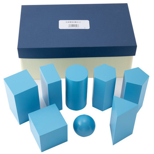 ●セット内容:立体8種×1個(立方体、球、直方体、円柱、三角柱、四角柱、五角柱、六角柱)●寸法:立方体=80mm、球=直径62mm、その他立体の基準寸法=70×135mm●ケース寸法:幅355×奥210×高145mm●材質:球・円柱=木製、その他の立体=MDF●貼箱入り●製造国:日本 ●最小出荷単位: 1