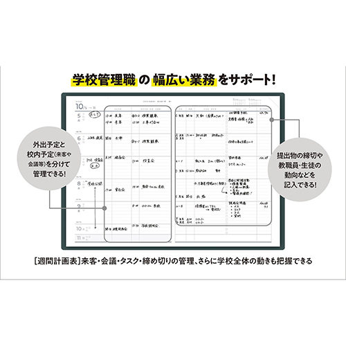 忙しい学校生活が変わる、教職員向け手帳の決定版!様々な職種に合わせたタイプから選べるスケジュール管理&記録ノート。