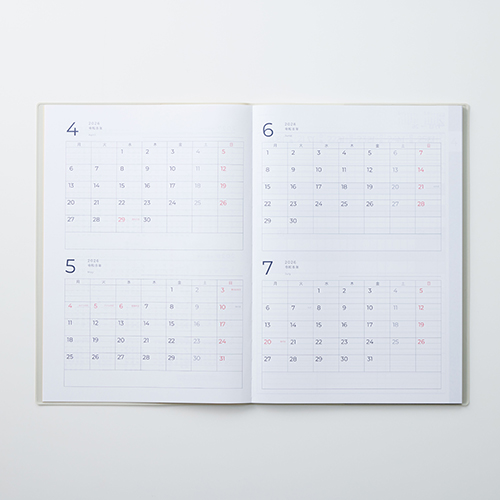 ●色:オフホワイト●規格:A4●仕様:年間計画表/月間カレンダー/週間計画表/フリーメモ/アドレス帳+別冊・記録ノート●種別:Uタイプ(ユニバーサル)●本冊(112ページ)+別冊・記録ノート(48ページ)●2026年4月~2027年3月 ●最小出荷単位: 1