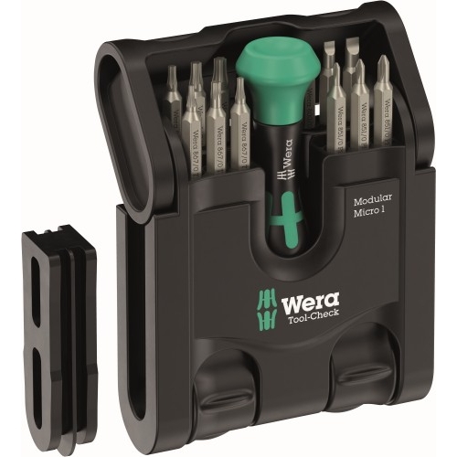 ●メーカー…Wera ●型番…049002 ●シリーズ…Tool-Check Modular Micro ●入組み点数…21 ●(+)ビット…サイズ:#000・#00・#0・#1 全長:30mm ●(-)ビット…サイズ(刃幅):1.5・2.5・3mm 全長:30mm ●(+)ポジビット…サイズ:#0・#1 全長:30mm ●HEXビット…サイズ:0.9・1.3・1.5・2・2.5mm 全長:30mm ●TORXビット…サイズ:T3・T4・T5・T6・T8・T10 全長:30mm ●精密ドライバーハンドル…差込六角対辺:4mm 全長:80mm ●ケースサイズ…75x30x115(H)mm ●重量…159g ●Tool-Check Modularシリーズはアダプターやヒンジを用いて工具セットを自由に組み合わせる事ができます。 ●コンパクトに設計されたケースは持ち運びに便利。 ●ビット差込み部はマグネット付き。 ●ドライバーハンドルの底部に回転キャップが付いていますので早回し作業に便利です。 ●精密機器の組立やメンテナンス作業に最適です。 ●参考在庫数・商品詳細・サイズ情報はメーカー(参考)URLからもご確認いただけます。 ●最小出荷単位: 1