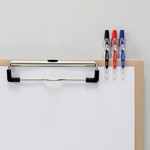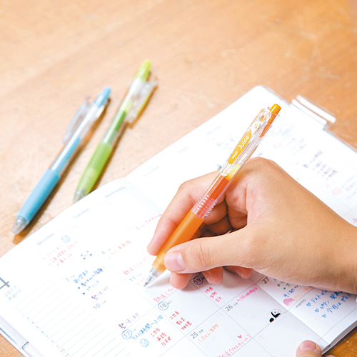 書き出しからくっきりなめらかに書けるゲルインクボールペン。10万回はさんでもこわれない(※メーカー試験による)丈夫なリフトクリップでバインダーなどにも挟めます。