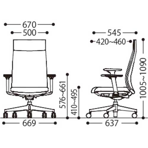●外形寸法(幅)[mm]:670●外形寸法(奥)[mm]:637●外形寸法(高)[mm]:1005~1090●質量[kg]:15.8●肘:肘付き●肘タイプ:可動式●色:スモークネイビー●座面高[mm]:410~495●座面寸法(幅)[mm]:500●座面寸法(奥)[mm]:420~460●肘高[mm]:576~661●機能:ガス圧座上下、オートバランスロッキング、多段階位置停止可能(4段階・18度)、座奥行調節、肘高さ調節(9段階・10mmピッチ)、肘前後調節(46mm)●材質:背(張地/芯材)=布(ポリエステル)/スチール、座(張地/芯材)=布(ポリエステル)/ポリプロピレン、クッション=モールドウレタン、脚=強化樹脂、キャスター=直径60mmナイロン双輪キャスター●肘=ポリウレタン・強化樹脂 ●最小出荷単位: 1