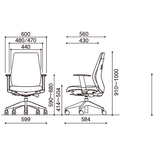 ●外形寸法(幅)[mm]:600●外形寸法(奥)[mm]:584●外形寸法(高)[mm]:910~1000●質量[kg]:16.2●肘:肘付き●肘タイプ:可動式●色:ダークグレー●座面高[mm]:414~504●座面寸法(幅)[mm]:480●座面寸法(奥)[mm]:430●肘高[mm]:590~680●機能:ガス圧座上下、オートバランスロッキング、多段階位置停止可能(4段階)、肘高さ調節(10段階・10mmピッチ)●材質:背・座(張地/芯材)=布(ポリエステル)/ポリプロピレン、クッション=背ウレタンフォーム・座モールドウレタン、脚=強化樹脂、キャスター=直径60mmナイロン双輪キャスター●肘=強化樹脂 ●最小出荷単位: 1
