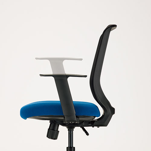 回収ペットボトルや漁網を使用した環境配慮型の事務用チェア/ブルー(肘付き)。肘なしは209-970よりお求めください。